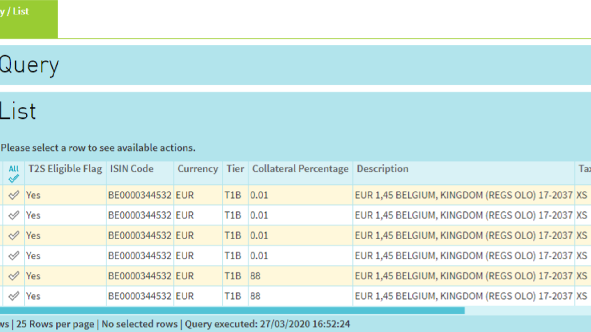 The query results will be displayed on a per ISIN basis: