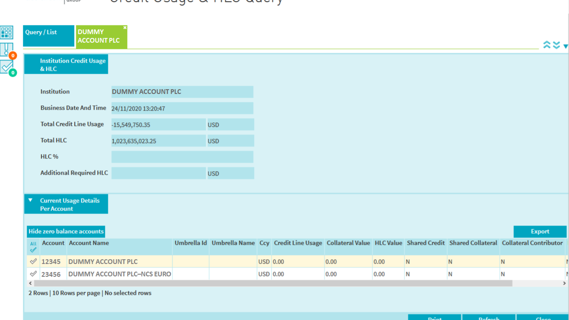 Customers are able to use a new “Credit Usage & HLC Query” sub-domain under “Cash & Liquidity”, “Usage” in Xact Web Portal that displays data both at institution and account level.