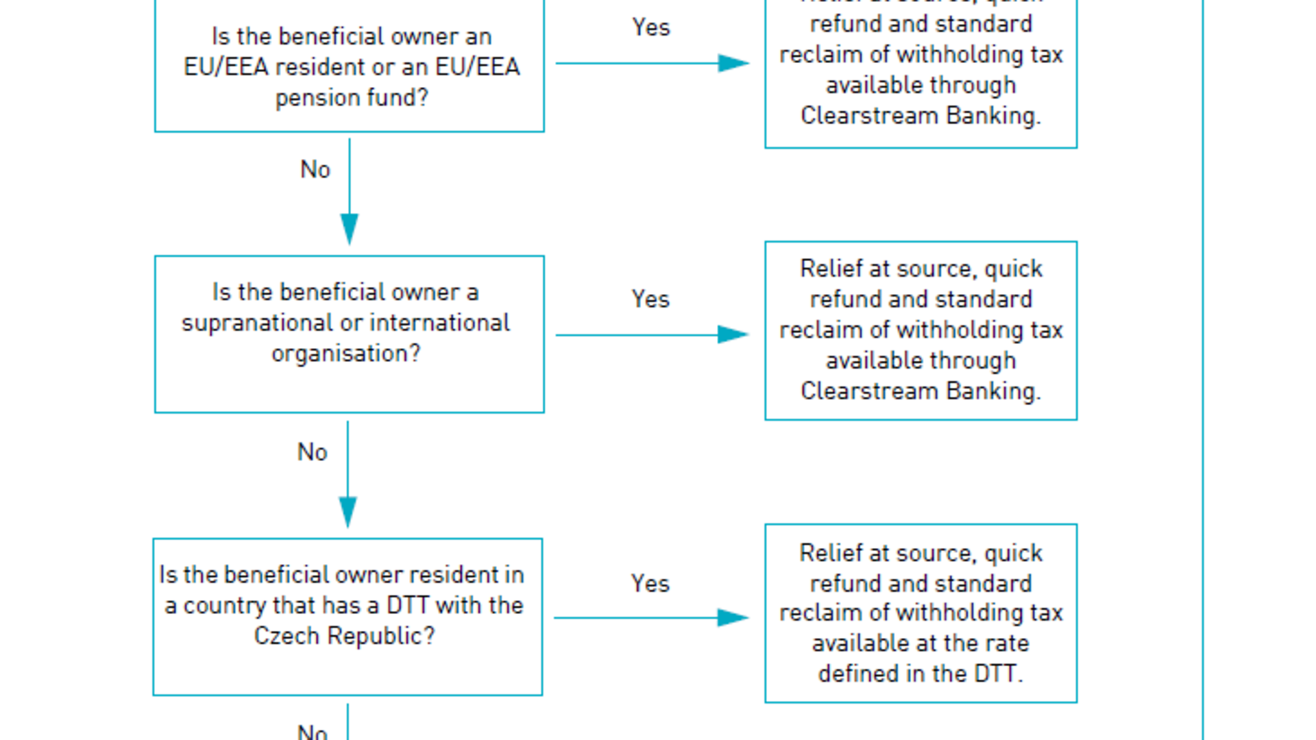 Click on the image for a larger view of the diagram showing the availability of relief at source and/or reclaim on withholding tax on income from Czech securities.