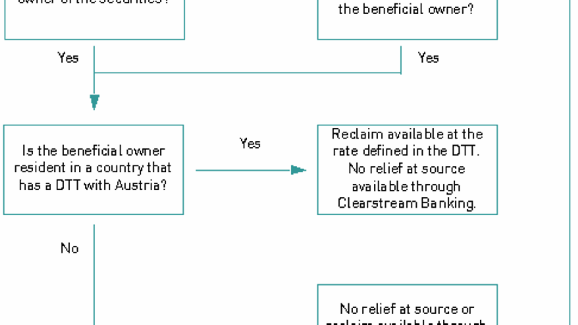 Click on the image for a larger view of the diagram showing the availability of relief at source and/or reclaim of withholding tax on income from Austrian equities.
