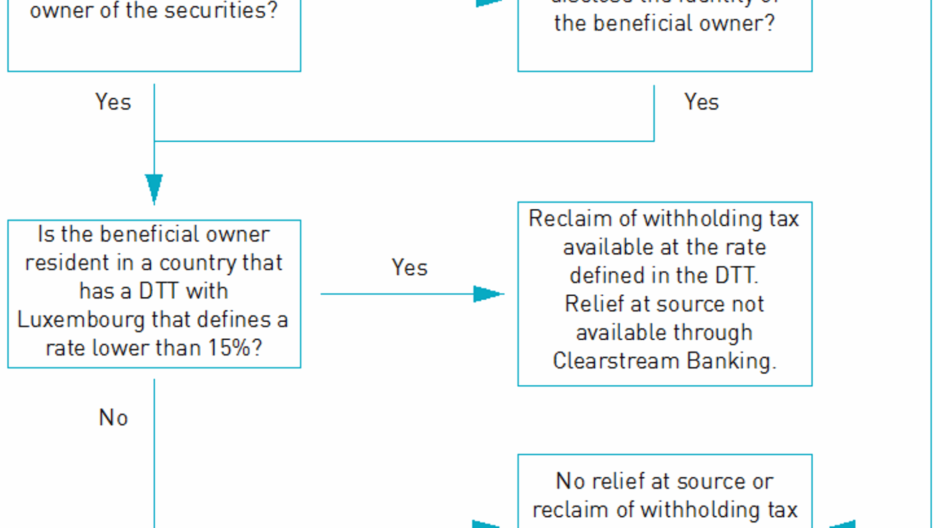 Click on the image for a larger view of the diagram showing the availability of relief at source and/or reclaim of withholding tax on income from Luxembourg equities.