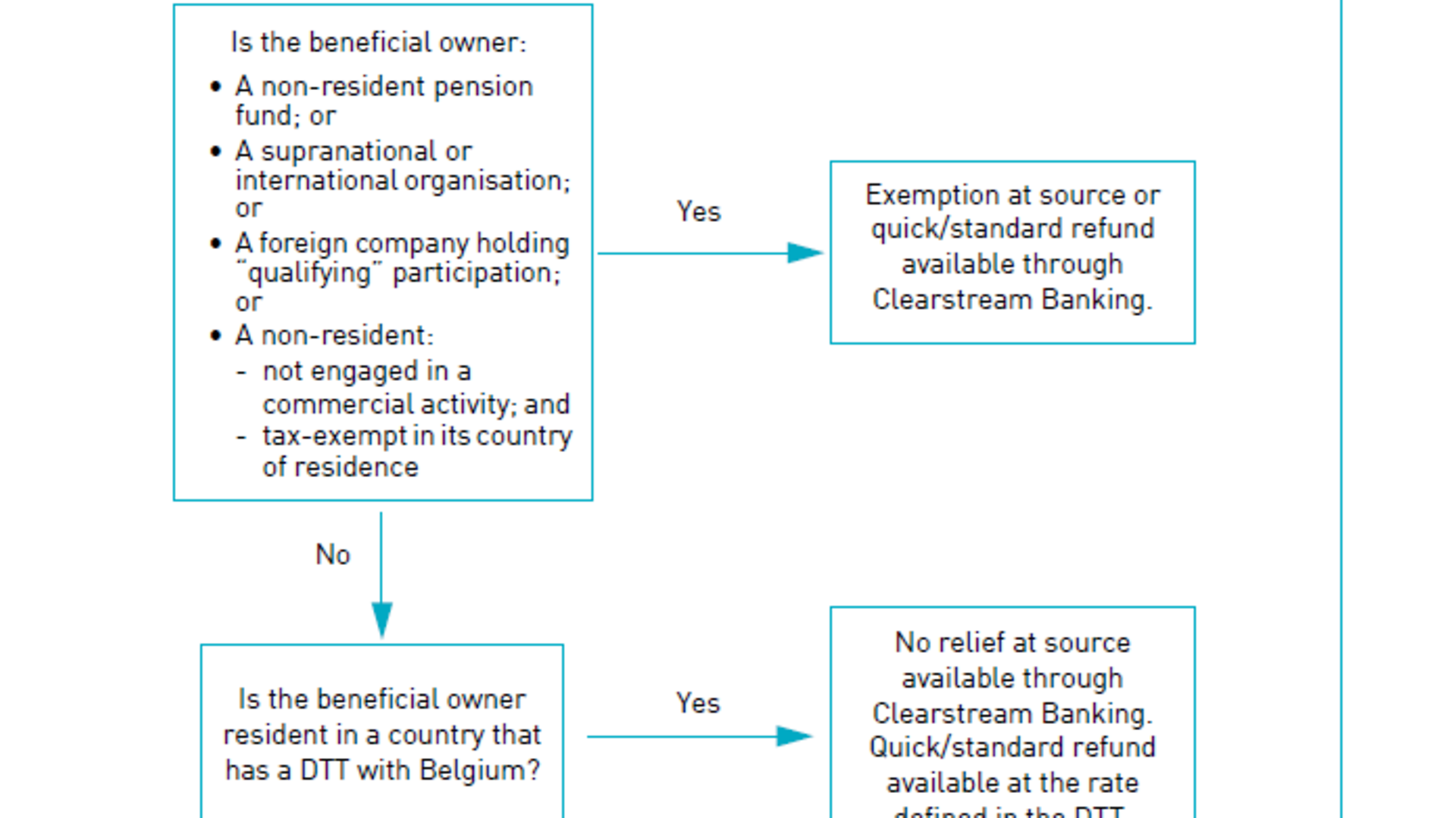 For supranational or international organisations , non-resident pension funds and foreign companies holding “qualifying” participation exemption at source from withholding tax or reduced withholding tax rate on dividends from Belgian equities is applied, upon submission of the requested documentation to Clearstream Banking, automatically on the entire customer entitlement for all dividend payments. No further action is required from customers in order to receive gross payments.
