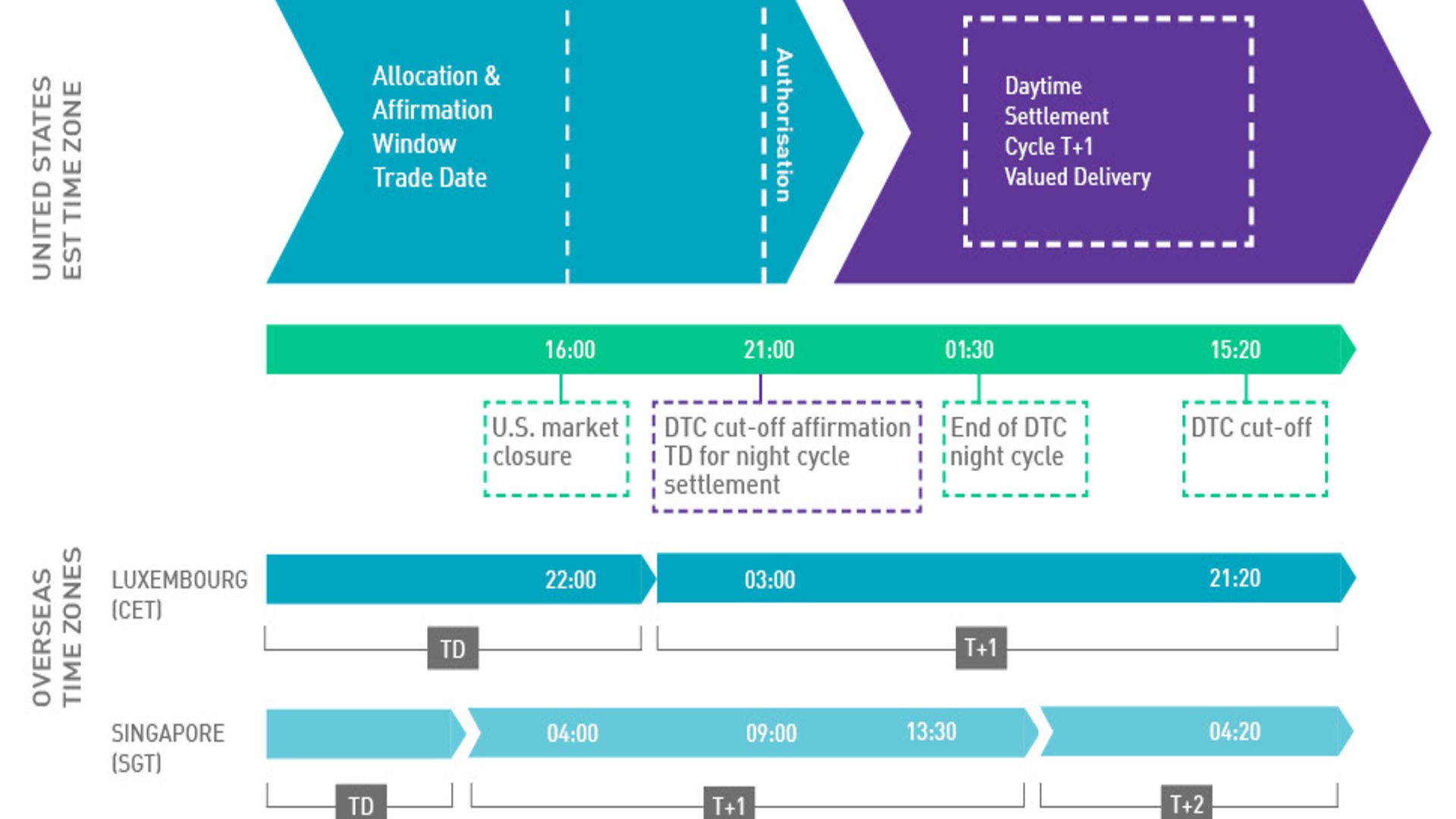 Note: DTC affirmation deadline in the current T+2 settlement cycle model is 11:30 ET on T+1/17:30 CET on T+1.
