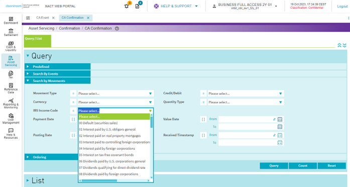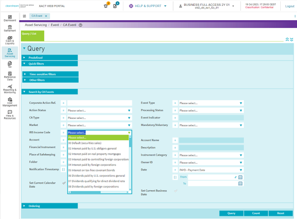It will be possible to search events in Xact Web Portal by using the new “IRS Income Code” drop-down list in the following queries: