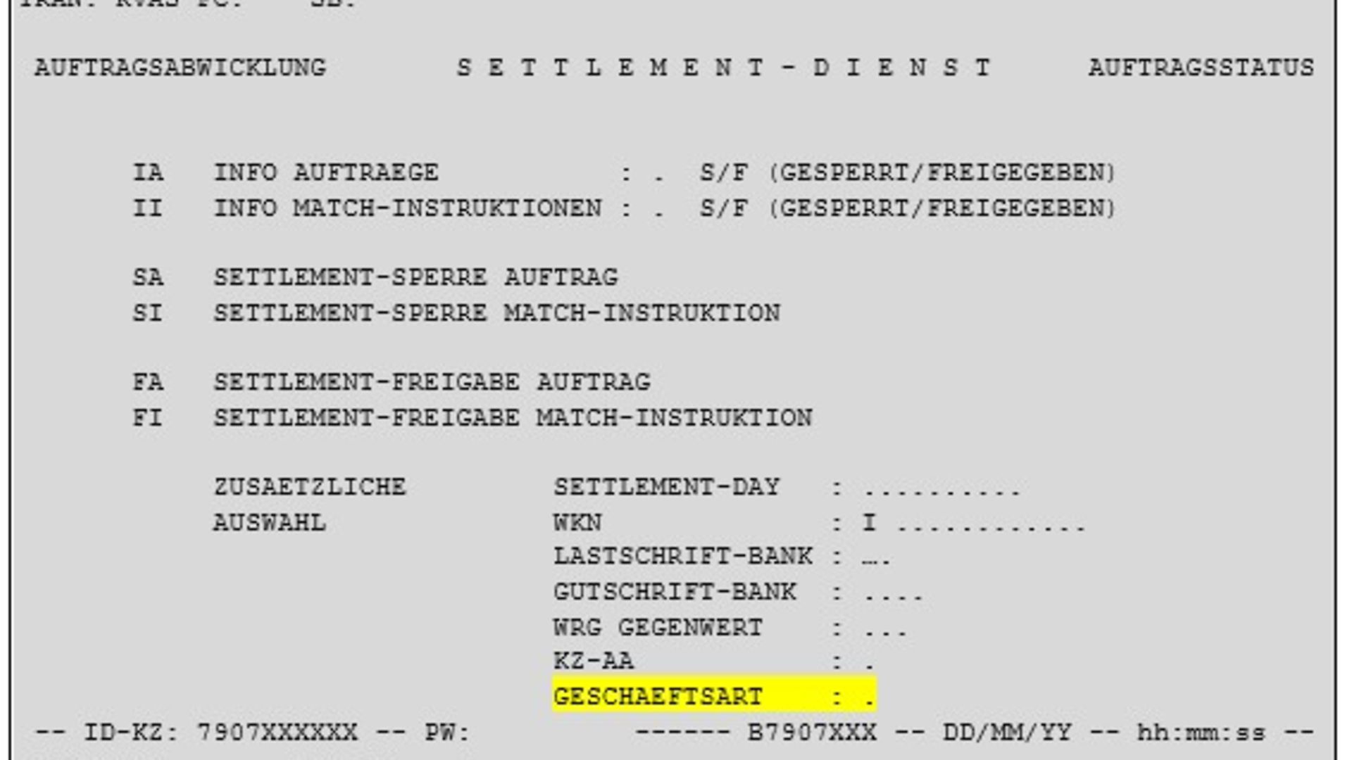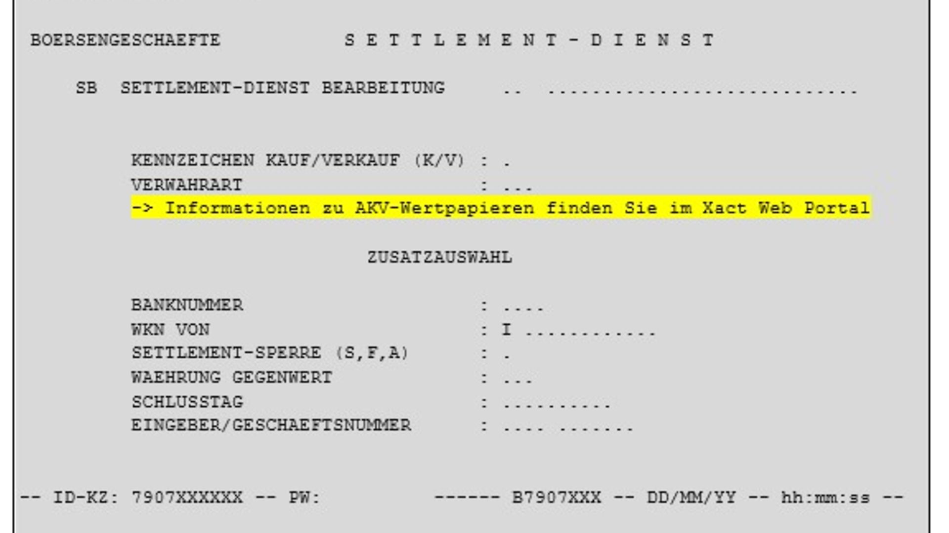 Transaction KVLS – Börsengeschäfte „Settlement Dienst“