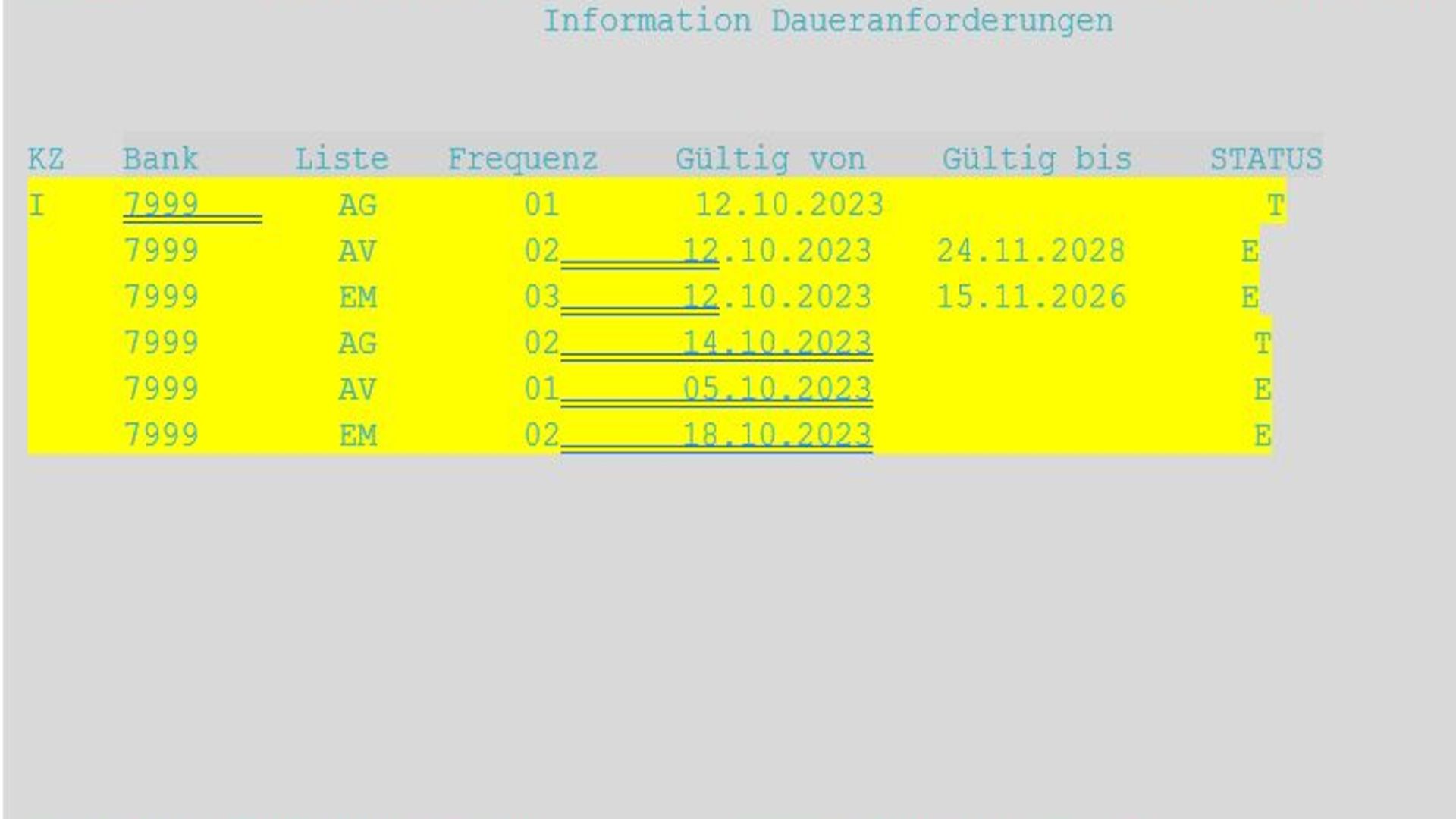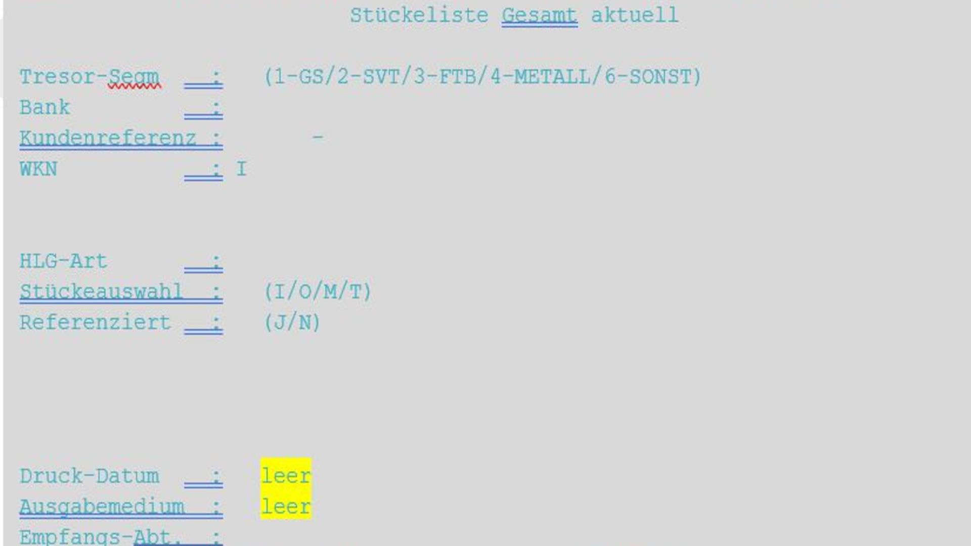 - Current holdings evaluation of issuing bank ("Bestandsauswertungen", EM); and