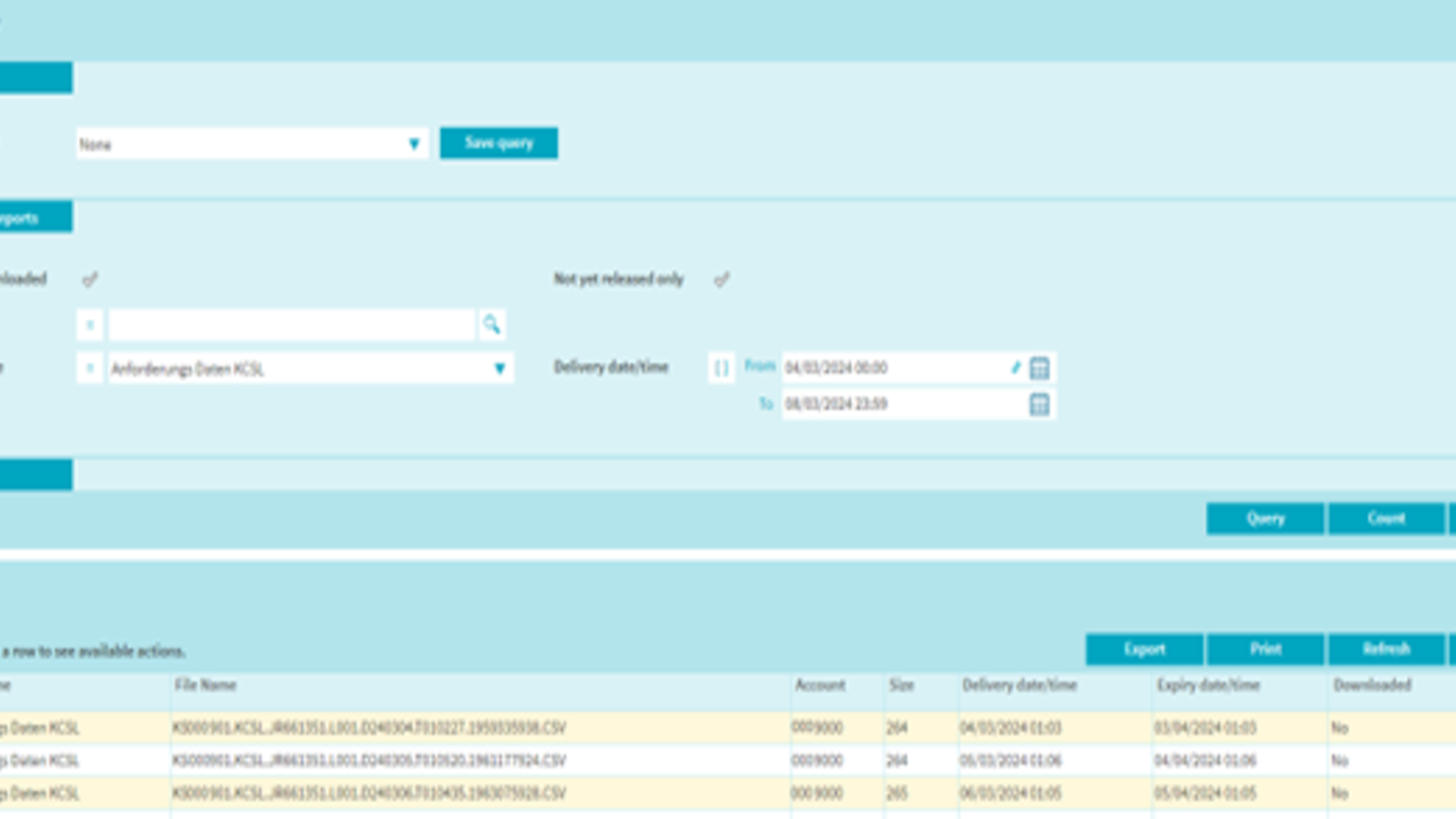 The lists generated based on the standing orders will be displayed in Xact Web Portal in the menu "Reporting & Monitoring / CBF File Service / Download Reports" similar to the one-time orders (example):