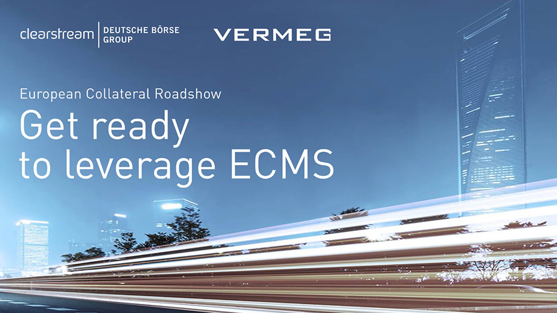 Join Clearstream and VERMEG for the European Collateral Roadshow “Get ready to leverage ECMS”, where we will provide valuable insights on the new Eurosystem Collateral Management System (ECMS) market infrastructure and explore how credit institutions can best prepare for a smooth transition in April 2024.