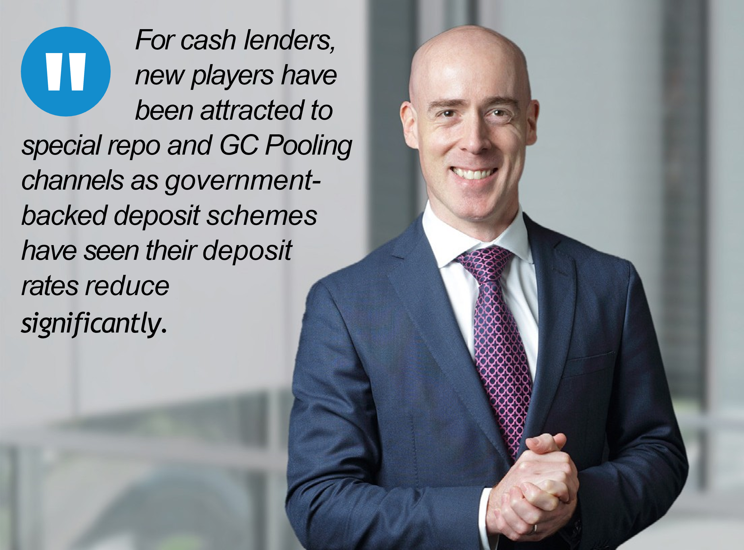 For cash lenders, new players have been attracted to special repo and GC Pooling channels as government-backed deposit schemes have seen their deposit rates reduce significantly. “Cash providers are less motivated to deposit cash with their central banks given they can attain a higher yield on their cash investments by entering into secured repo transactions with Street-side counterparties, while benefiting from the operational efficiency and risk management features offered via a triparty programme,” says Delaunay.