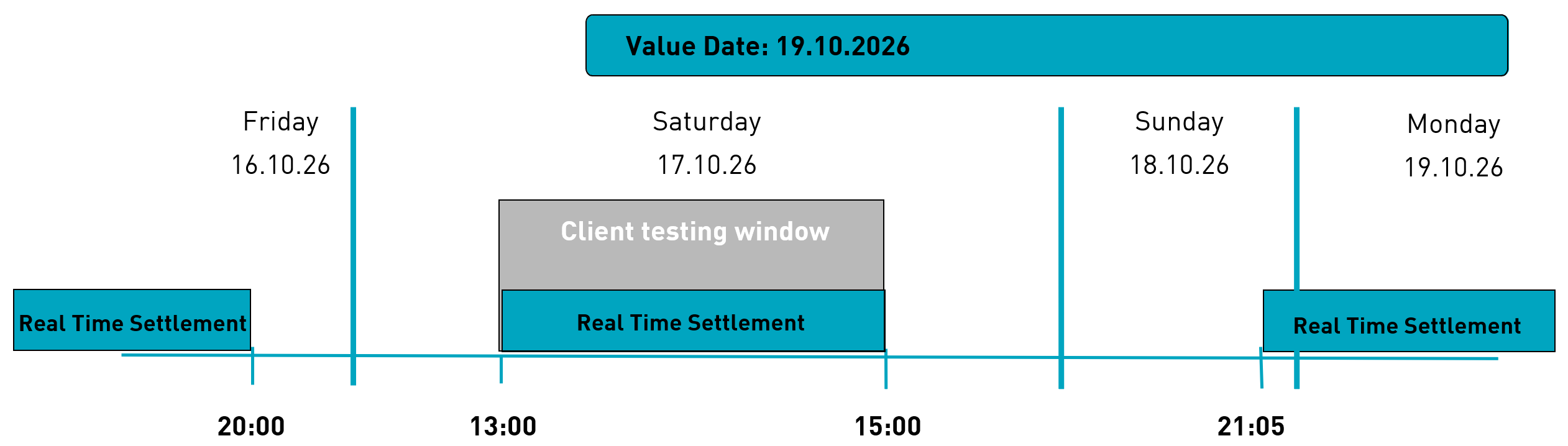 All data input during the test will be processed. Normal processing will resume with the RTP period starting at 21:05 (CEST) Sunday 18 October 2026.