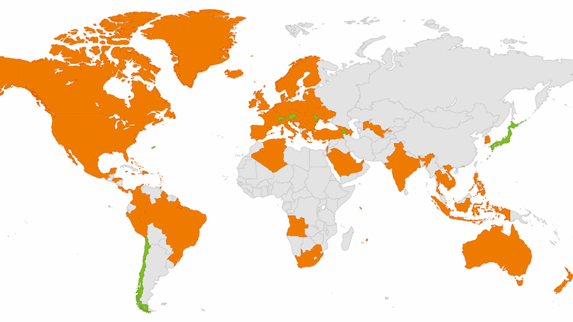 Armenia, Austria, Bermuda, Chile, Hong Kong, Japan, Macao, Moldova, San Marino, Switzerland*, Taiwan
