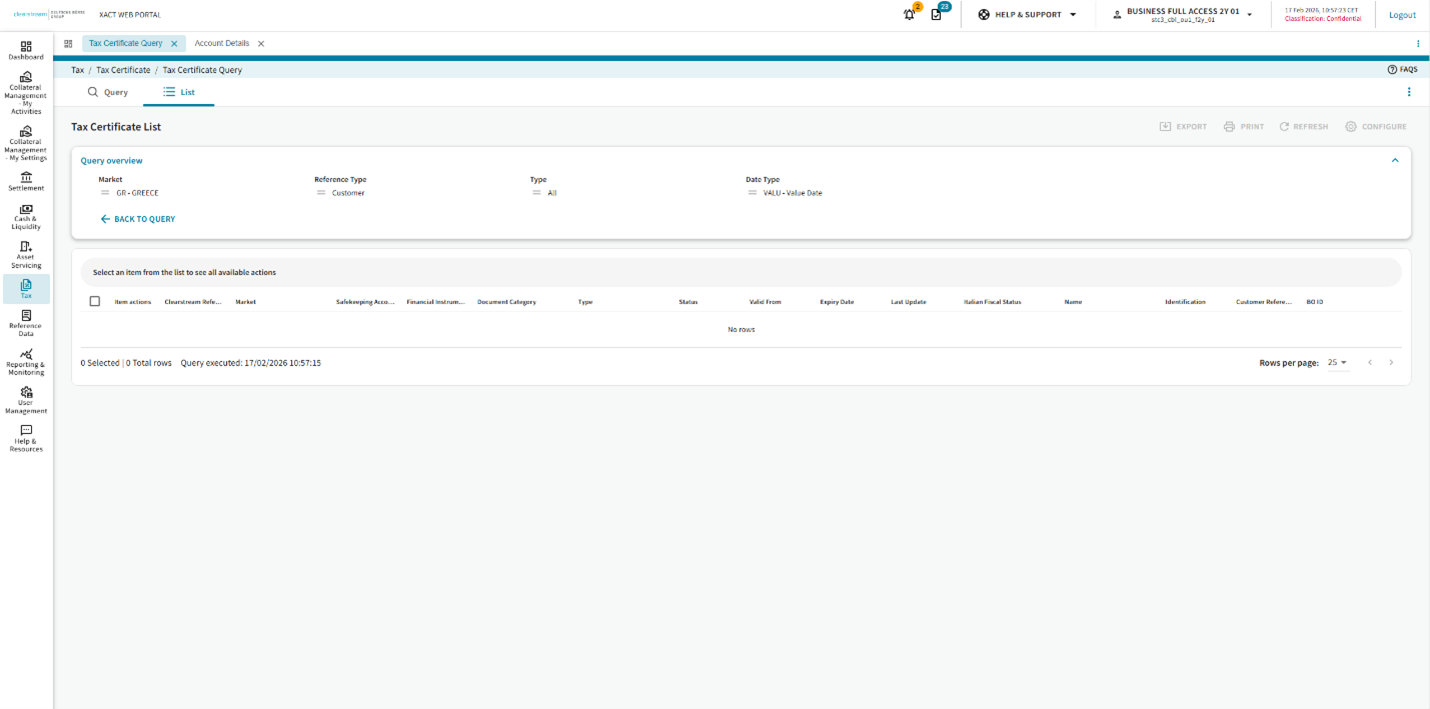 In this upcoming release, Clearstream will introduce a new user interface and experience for the Tax Certificate Query section in Xact Web Portal. These changes will improve the experience of users accessing their Tax queries.