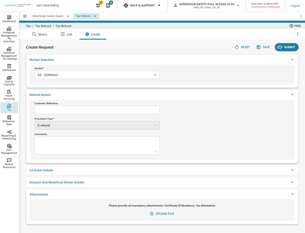 Clients will be able to request a tax reclaim and upload all supporting documents in Xact Web Portal, ensuring a secure single electronic submission process.
