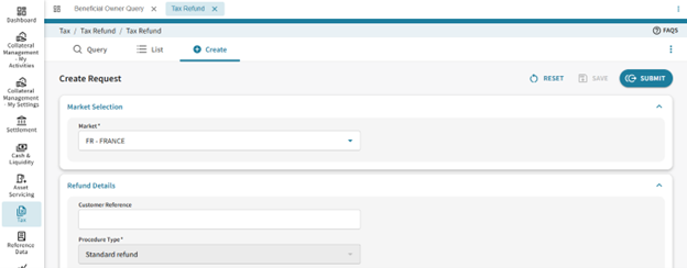- Tax Reclaim: E-Submission markets, starting with Germany