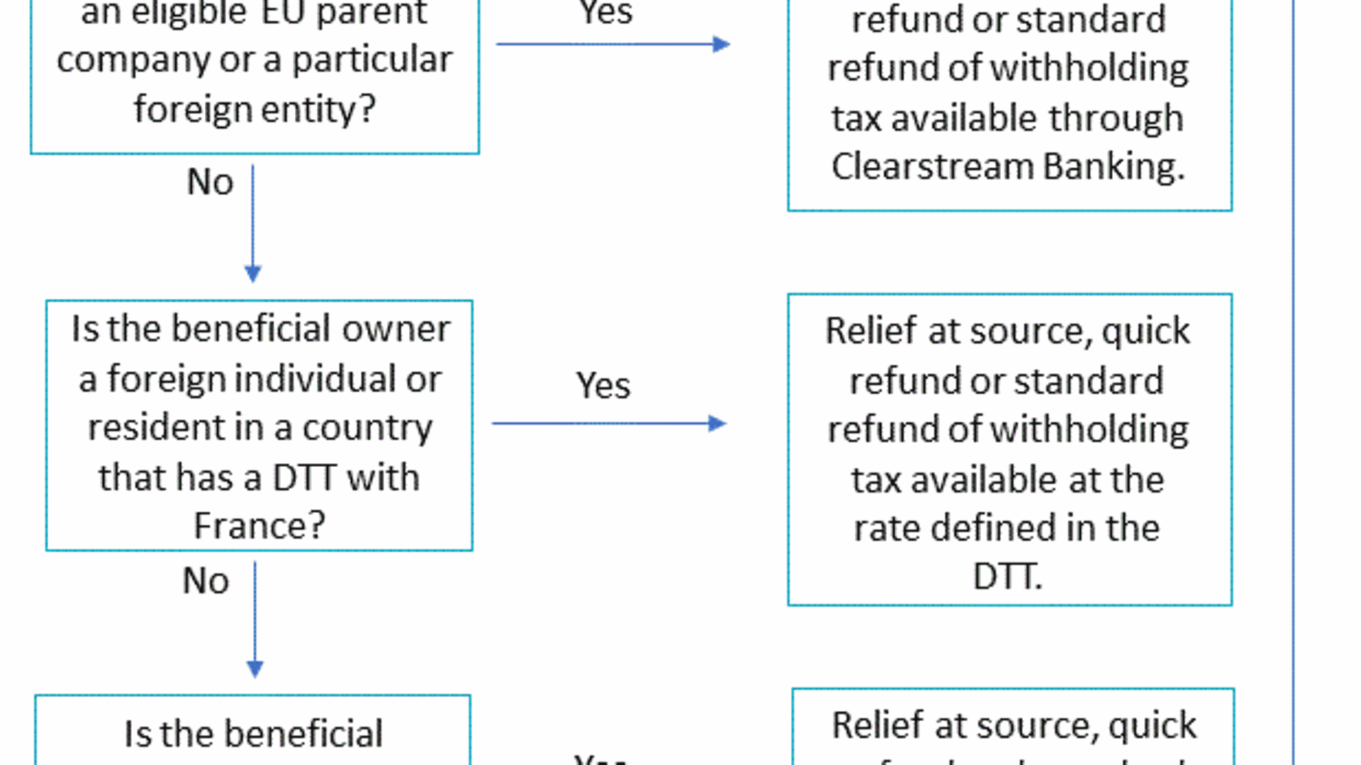 Click on the image for a larger view of the diagram showing the availability of relief at source and/or reclaim of withholding tax on income from French equities.