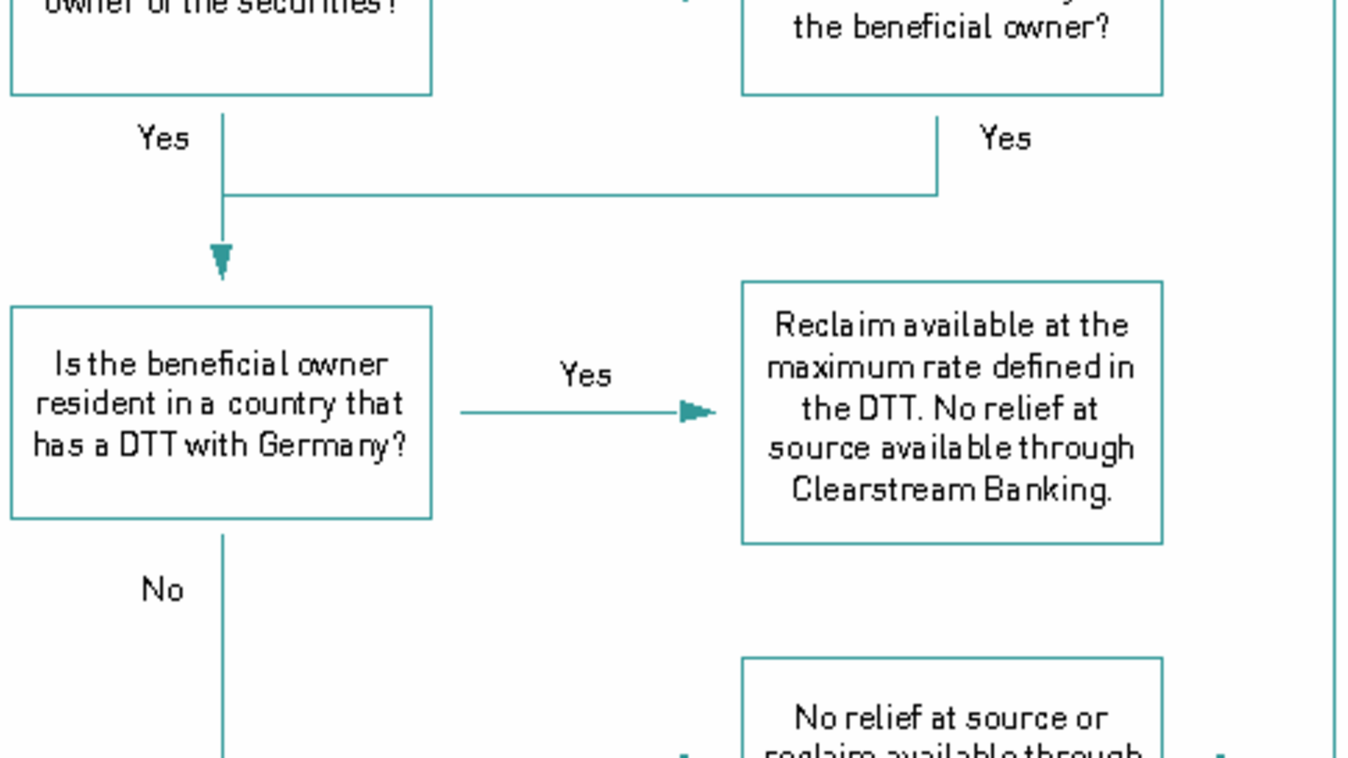 Relief at source for beneficiaries other than certified investment funds is not available through Clearstream. Quick refund is possible for investment funds with unlimited tax liability in Germany (“unbeschränkt körperschaftsteuerpflichtig”).