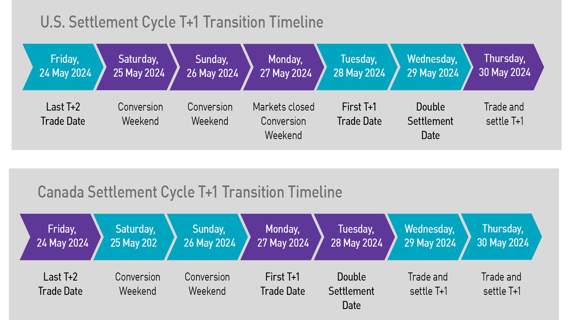 Please see the separate FAQs for further information on the shift to the T+1 settlement cycle in Canada and Mexico.