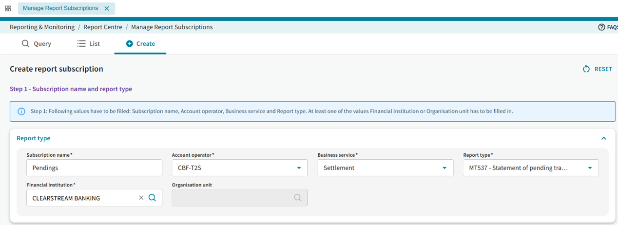 Currently, the report subscription screen of an MT548 status feedback report looks as follows