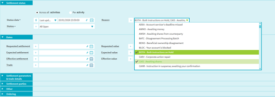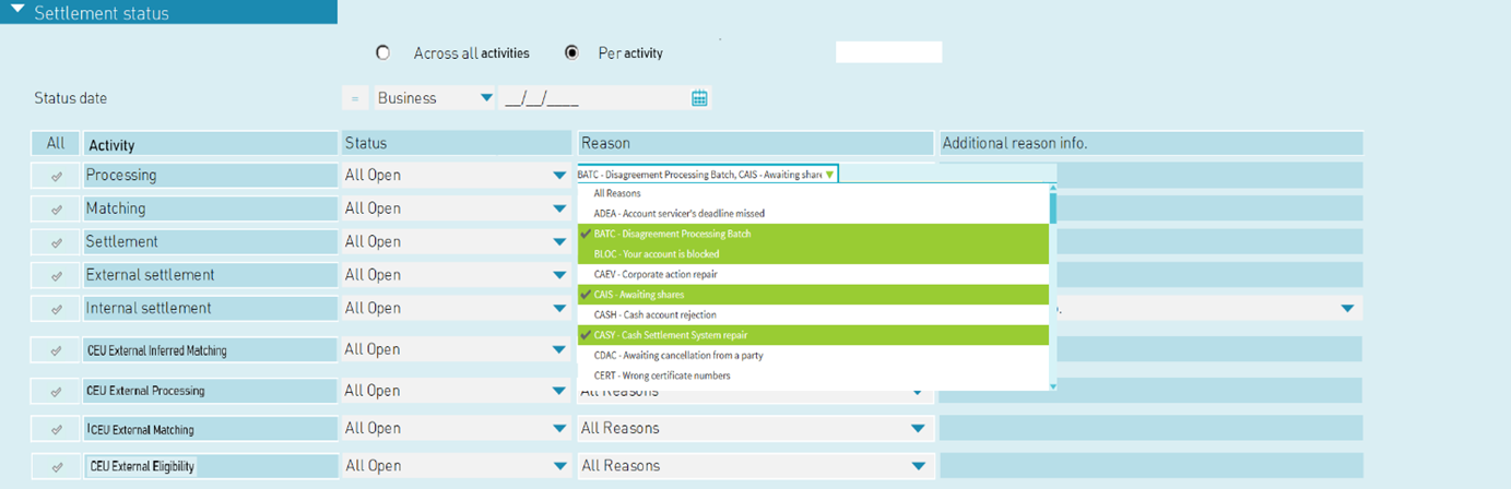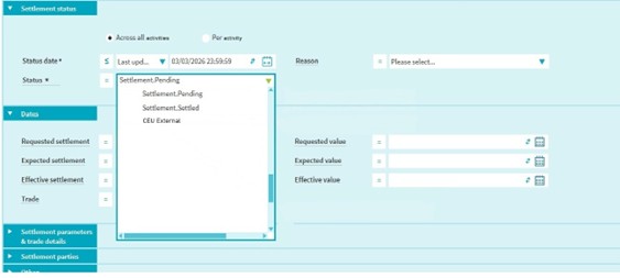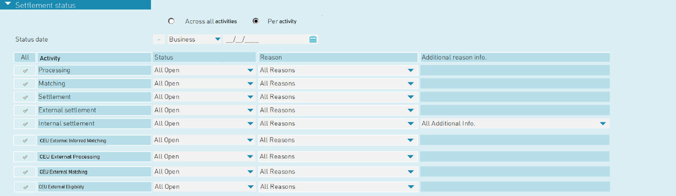 Option 2 (only available for open instructions): Query per settlement activity