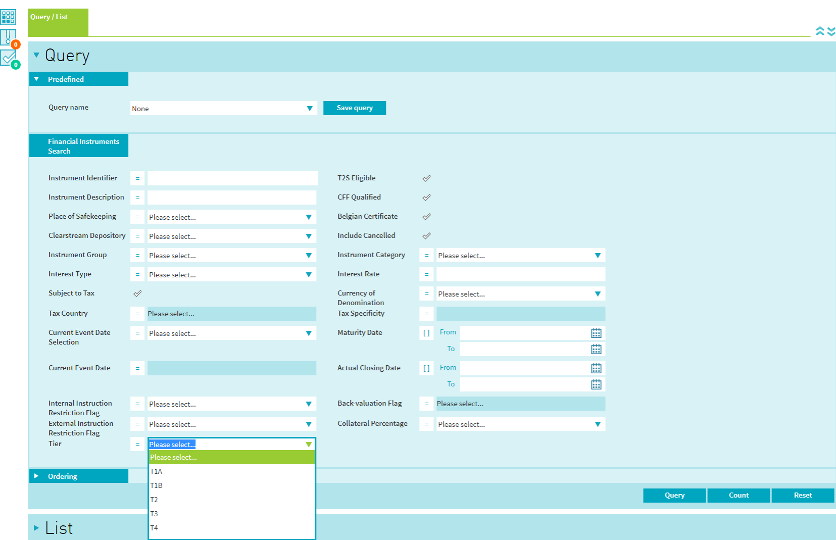 The “Tier” value will be available in Xact Web Portal under Reference Data, Financial Instruments, Financial Instruments Query: