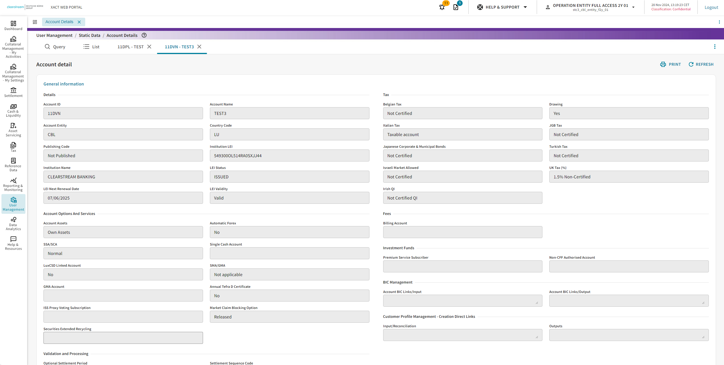 In this upcoming release we will be introducing the Account Details section in the Xact Web Portal User Management module, allowing users to easily access details about the setup of their Clearstream Banking accounts.