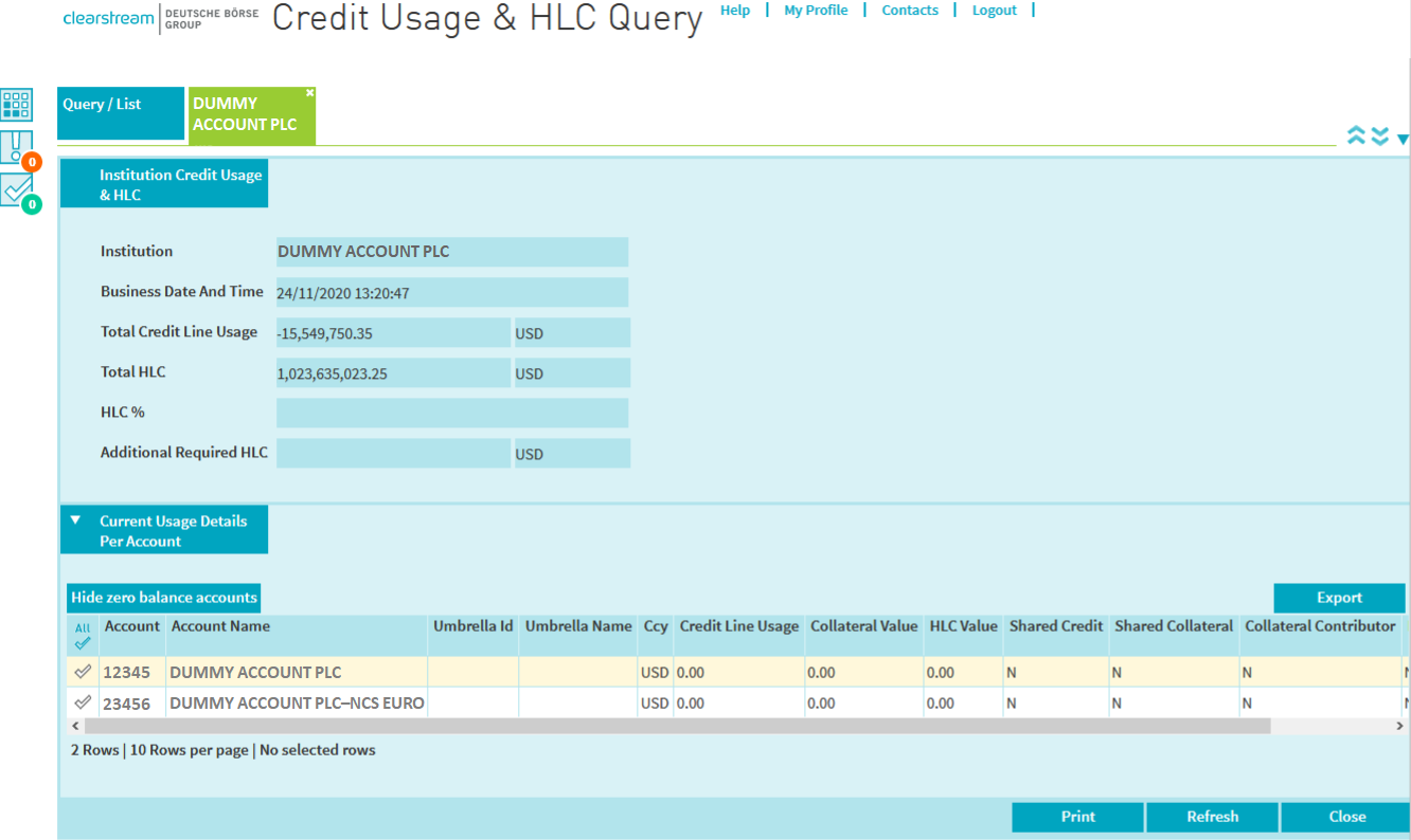 In line with the above regulation, Clearstream Banking offers customers the possibility of monitoring their High Liquidity Collateral (HLC) value against the credit line usage as defined in the contractual Credit Terms and Conditions (CTCs) establishing the need for the customer to cover their credit line exposure.