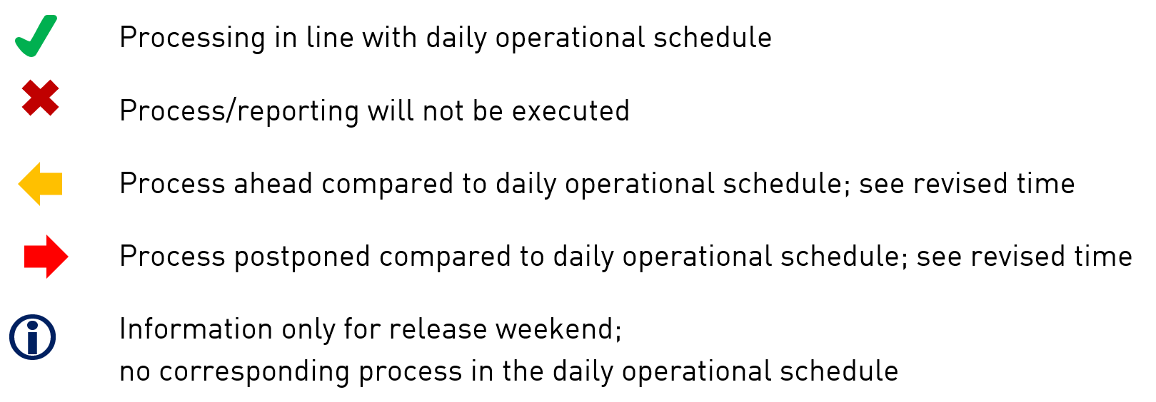 Due to the "T2S Release Weekend Schedule" the timeline of the operational day and respective reporting during the T2S deployment weekend will be changed.