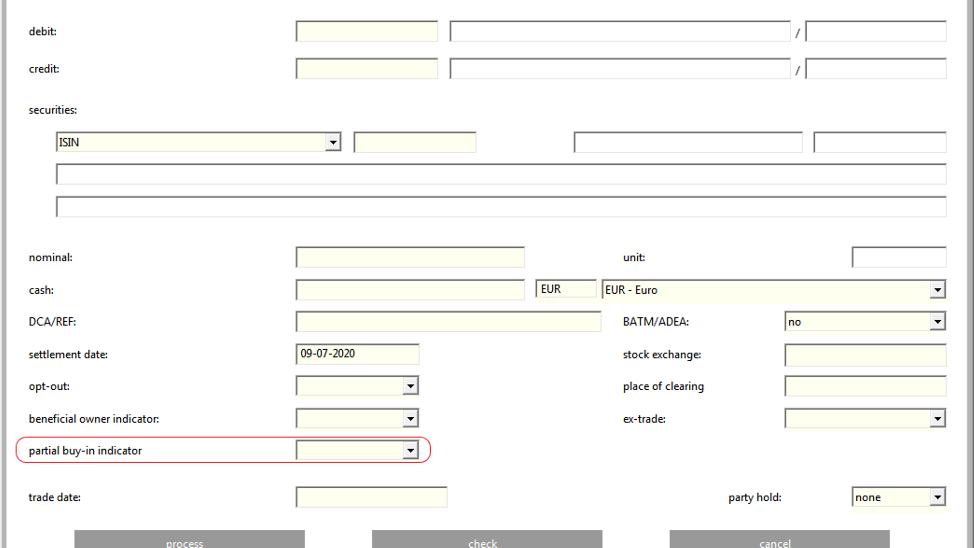 In the mandatory sequence B (“Request Details”) the field :22F: (Indicator) must be specified one of the following three status concerning a buy-in (BYIY):- BSSY indicates “successful”;